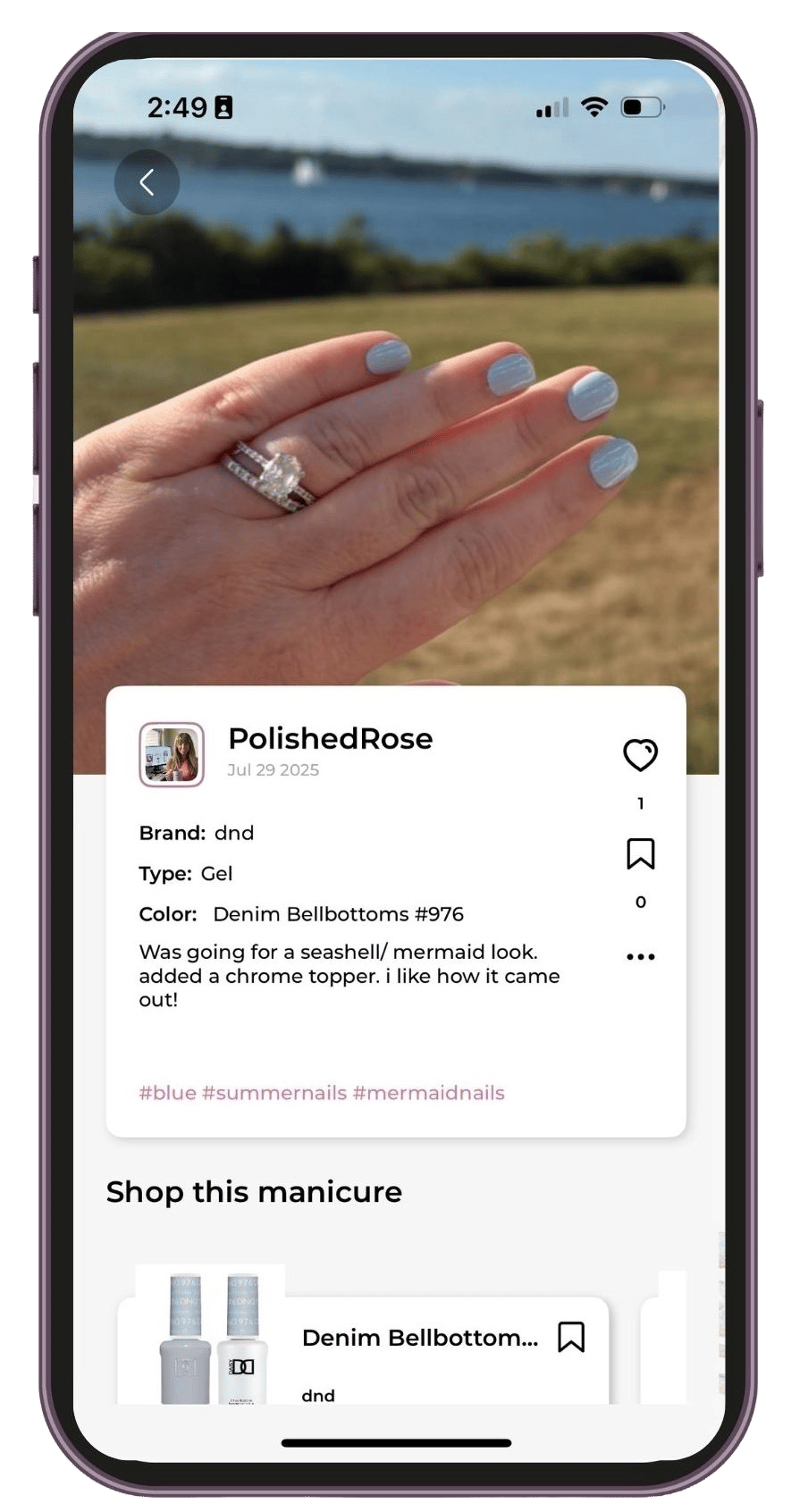 • With Polished, you can save and revisit your manicure history, explore what others are wearing, keep a “want to try” list, and even shop polishes - all in one place. Since launching in the Apple App Store in January 2022, our community of manicure enthusiasts has been growing every day.